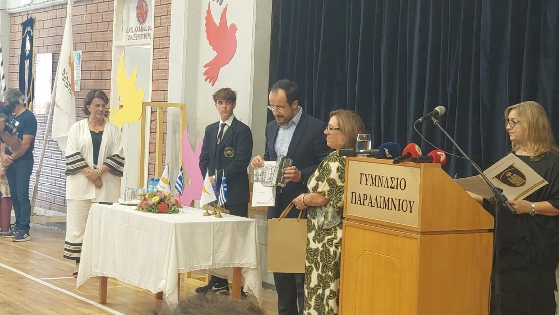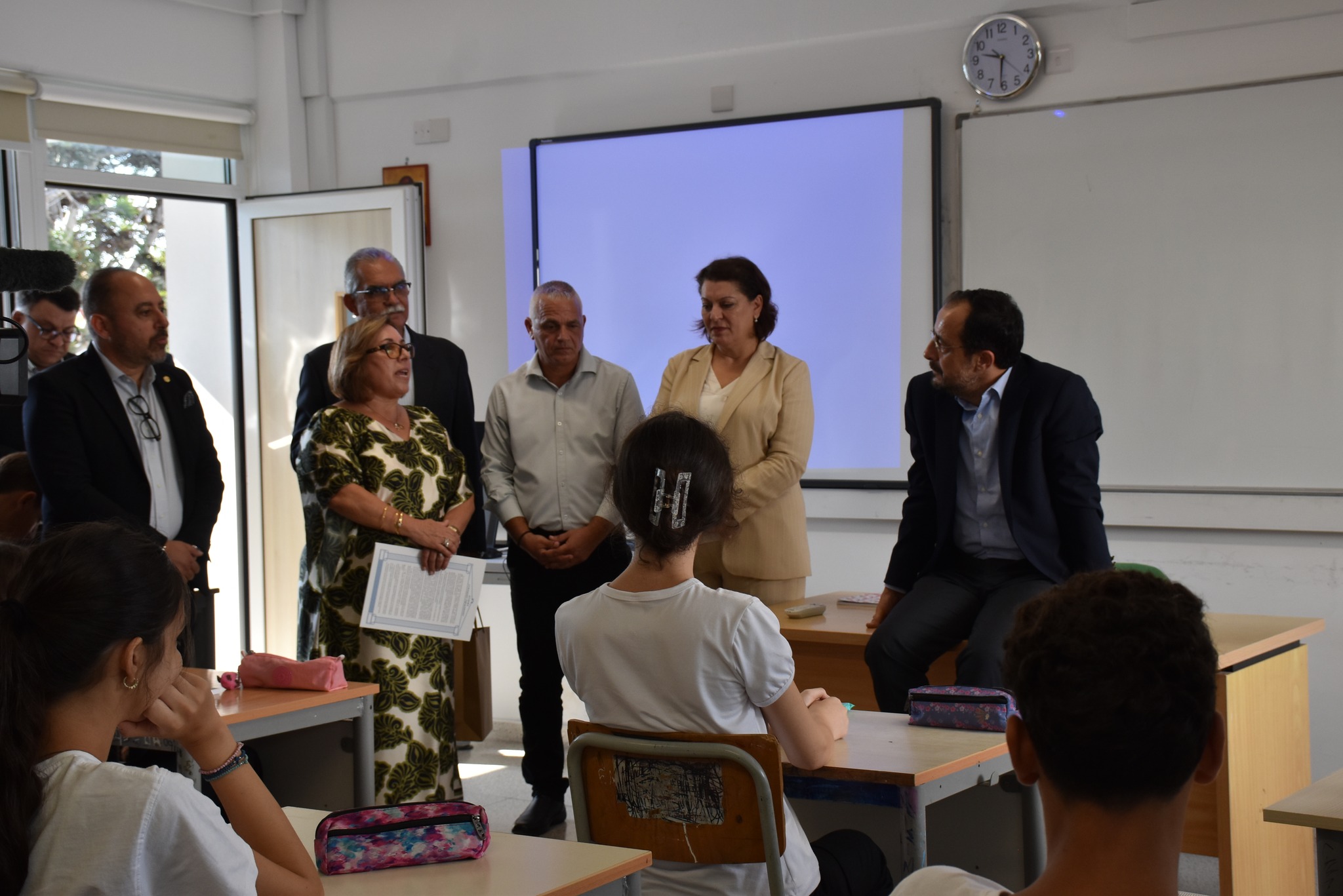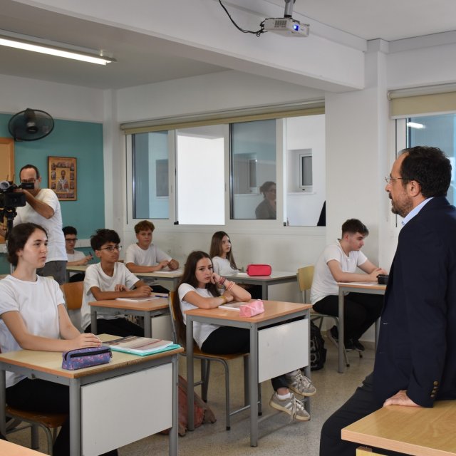 Σήμερα είχαμε τη χαρά και την τιμή να φιλοξενήσουμε, για πρώτη φορά στην ιστορία του σχολείου μας, τον Πρόεδρο της Δημοκρατίας κ. Νίκο Χριστοδουλίδη. Τον συνόδευε η Υπουργός Παιδείας, Αθλητισμού και Νεολαίας, δρ Αθηνά Μιχαηλίδου, με την ευκαιρία της έναρξης της νέας σχολικής χρονιάς.