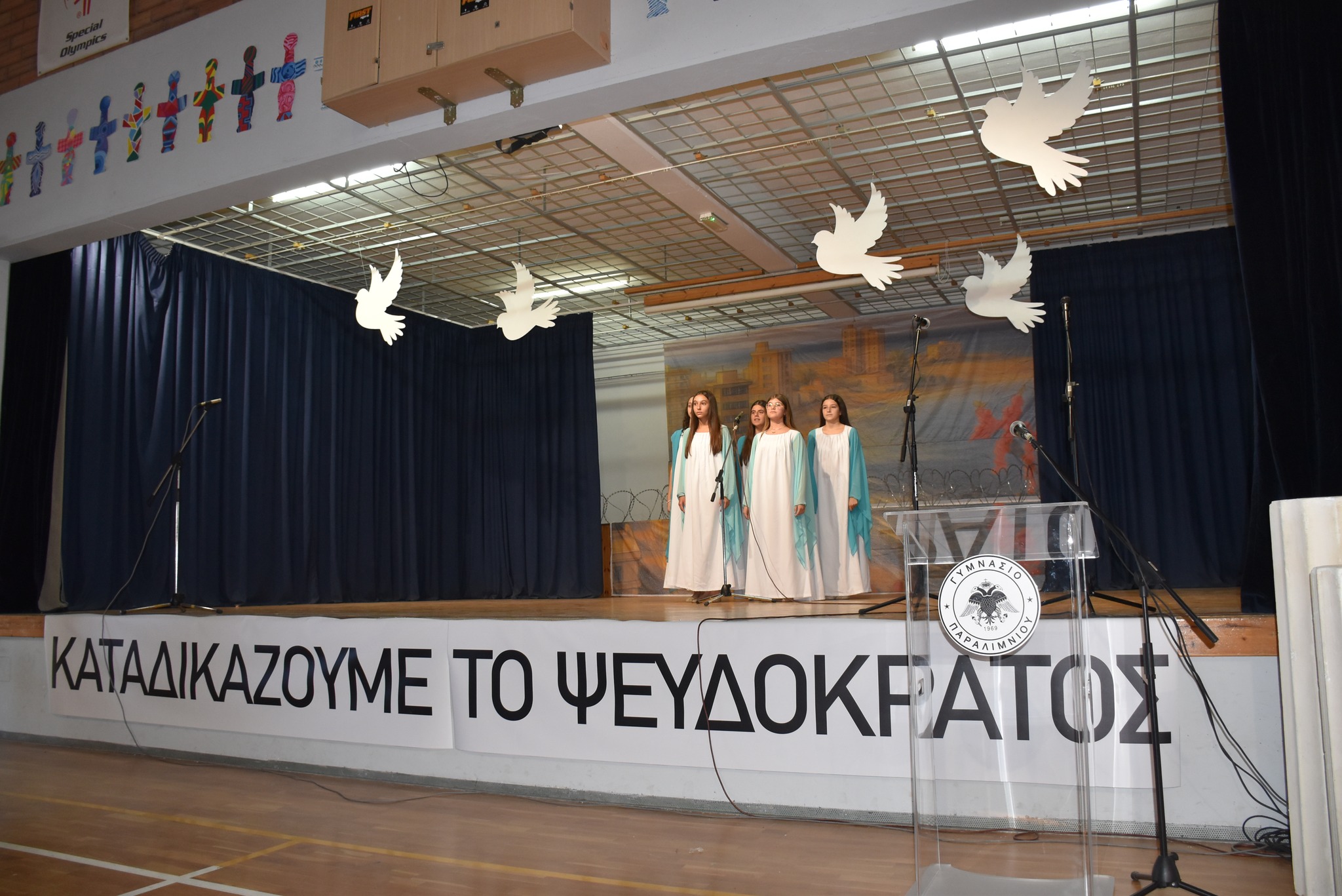 Παράλληλα, το Κεντρικό Μαθητικό Συμβούλιο του Σχολείου μας ανέγνωσε ψήφισμα καταδίκης του ψευδοκράτους προς τον Ο.Η.Ε., στην μαθητική κοινότητα προς έγκριση.